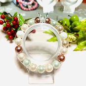 美しい天然石の魅力的なブレスレットです。10mmの天然石と貝パールがリズミカルに並び、約16cmの丁度良いサイズ感が手首を美しく引き立てます。優雅な蝶飾りが加わることで、特別な雰囲気を演出し、シンプルながらも華やかさを感じさせるデザインとなっています。普段使いから特別なシーンまで、幅広くご利用いただけるアイテムです。