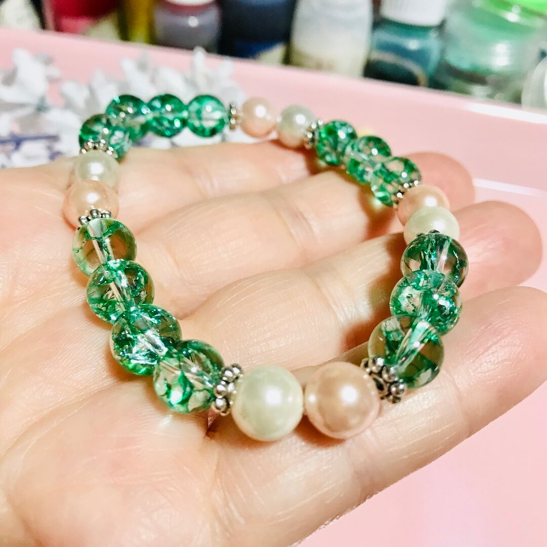 ☆天然石パワーストーングリーンクラック水晶☆貝パールブレス☆