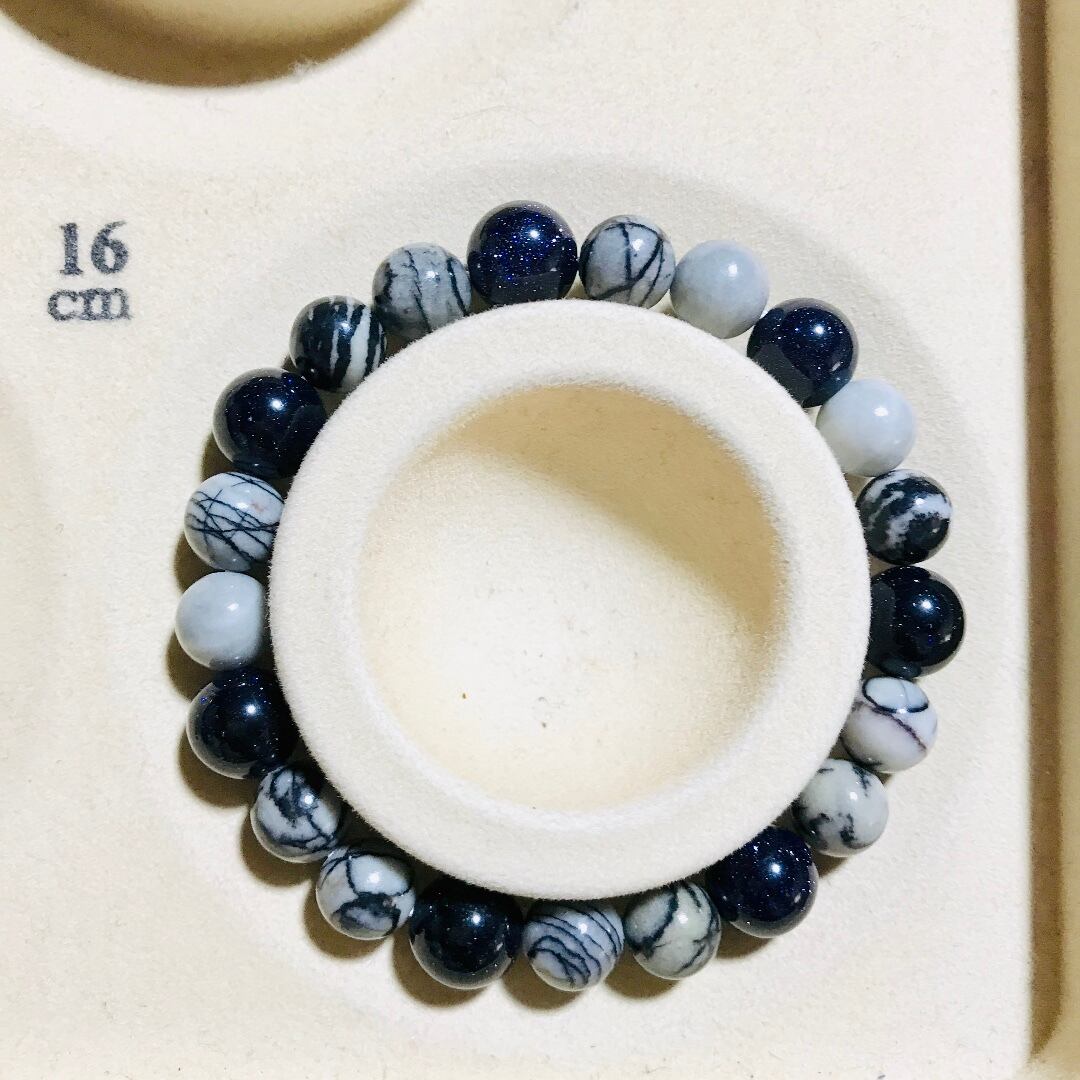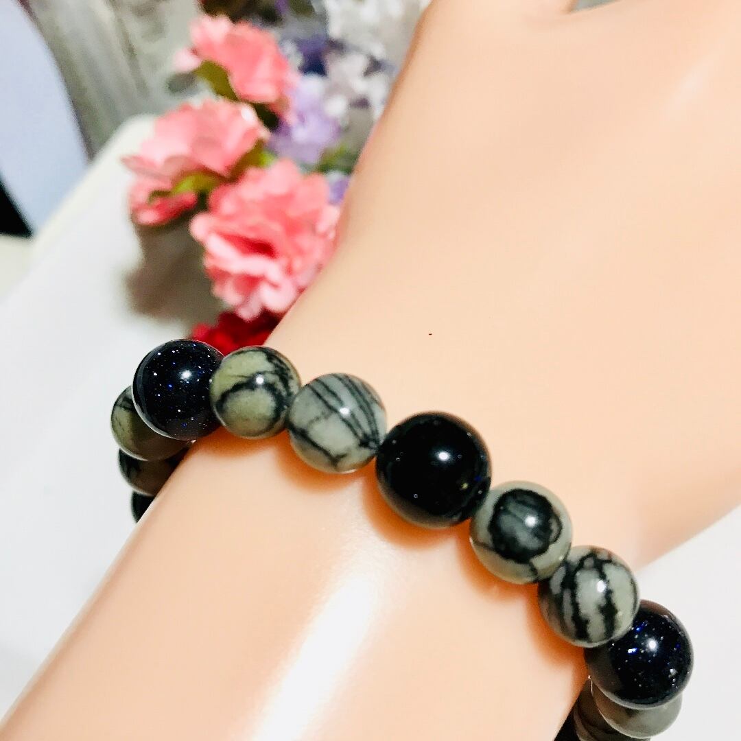 ブルーゴールドのラメが 少し地味なゼブラジャスパーを、都会的なブレスに演出してくれています。