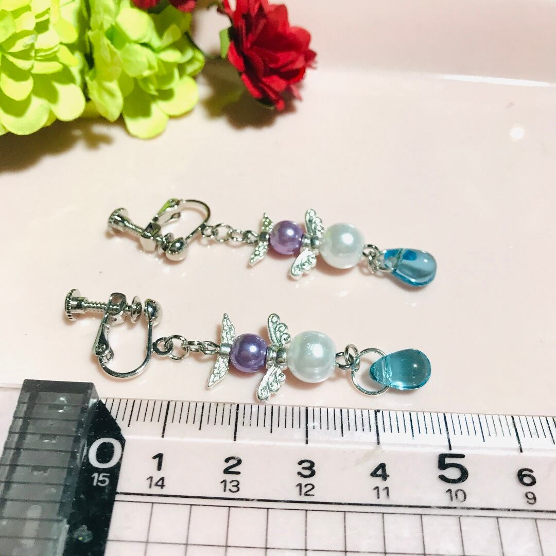 ☆まるでクリオネみたいなチェコガラス雫イヤリング☆