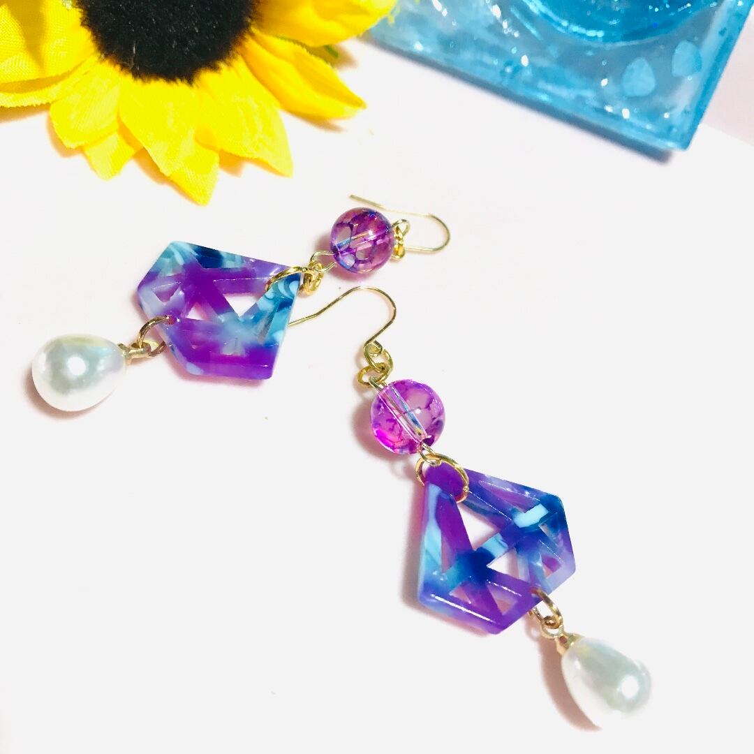 宇宙柄べっ甲も明るいお色で上品なピアス。