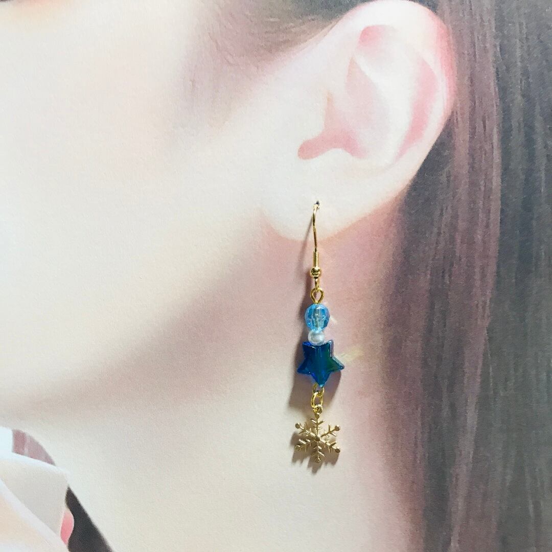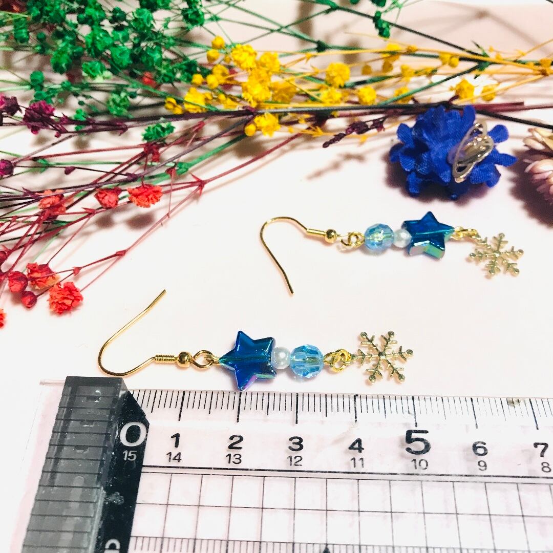 スノーフレークと星形ビーズでキラキラ