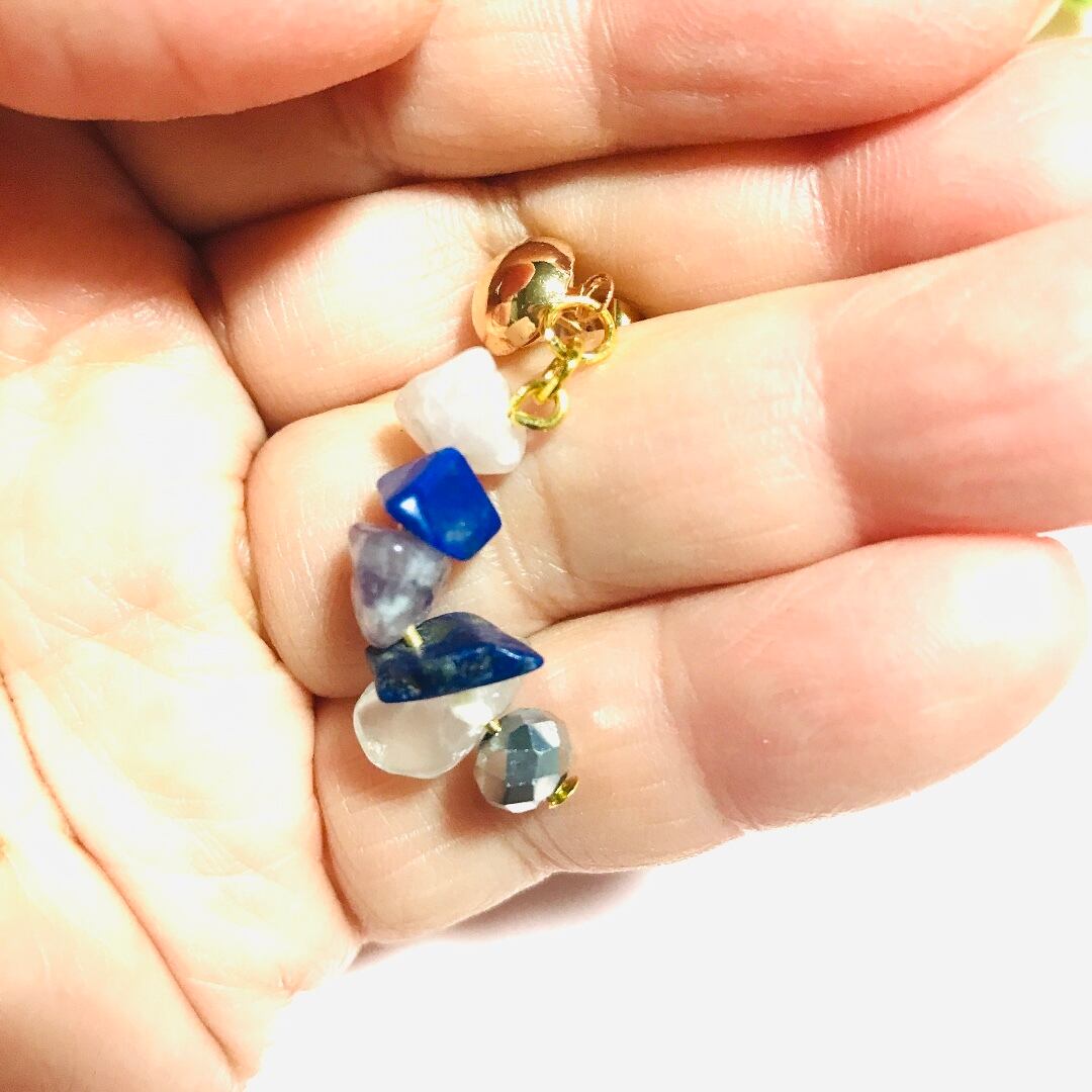 天然石さざれ石を使用したピアスに
