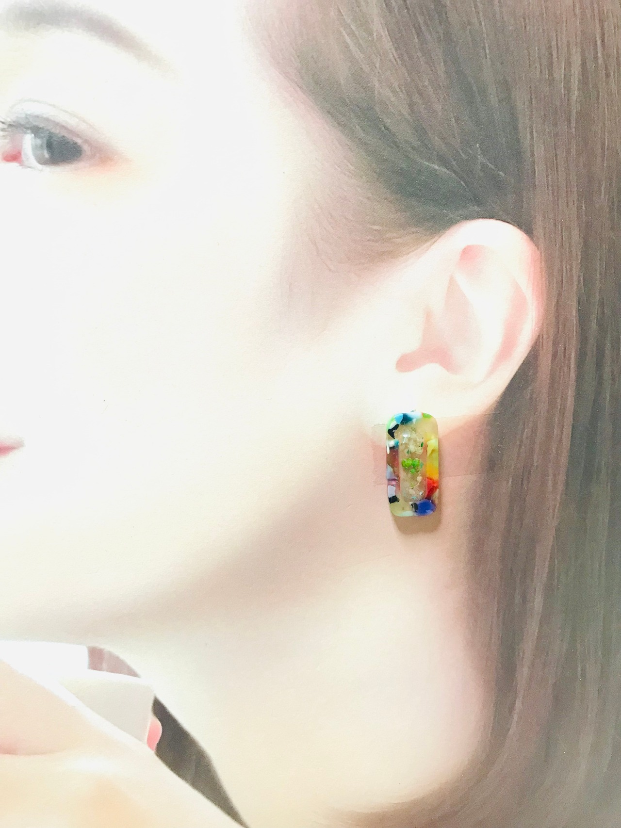 ポップなマーブル柄のプレートピアス