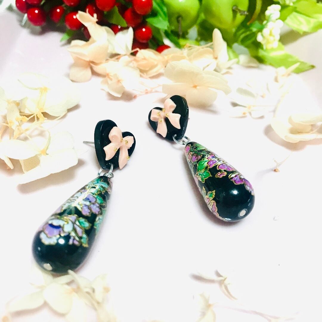 可愛いリボンと雫ビーズの模様が素敵ですね。