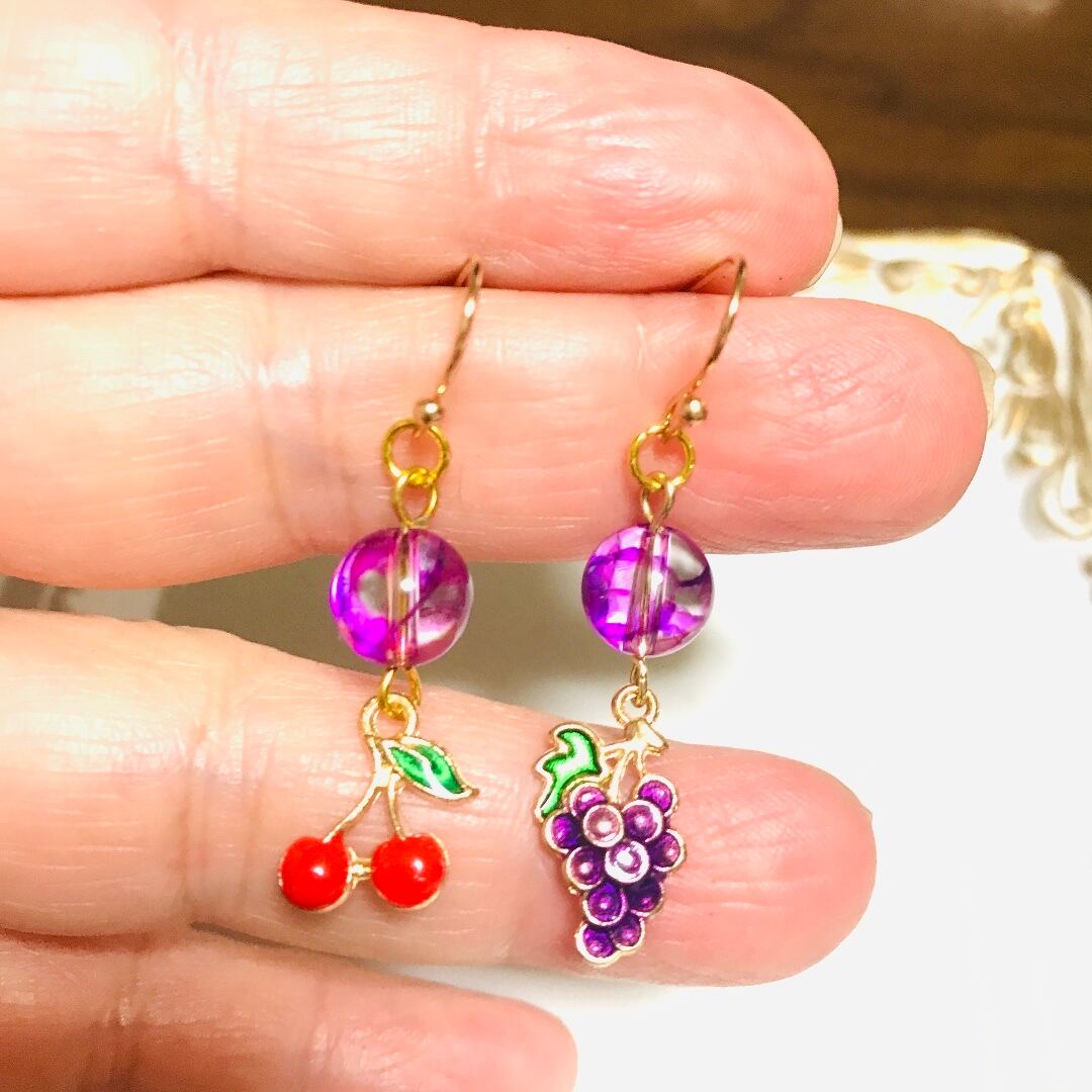 キラキラ輝く天然石に可愛いさくらんぼさん。