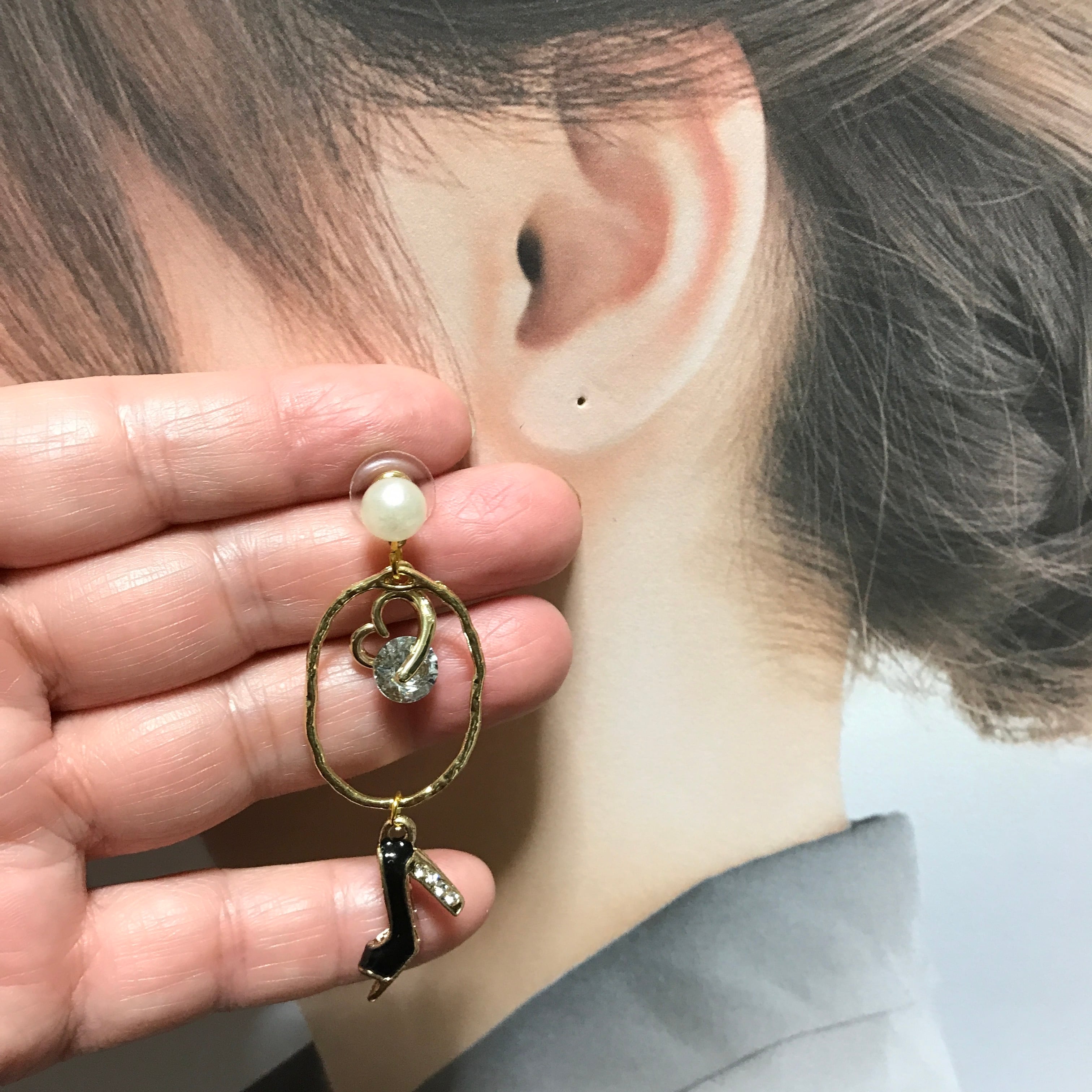 イヤリング金具はアレルギー対応サージカル使用。