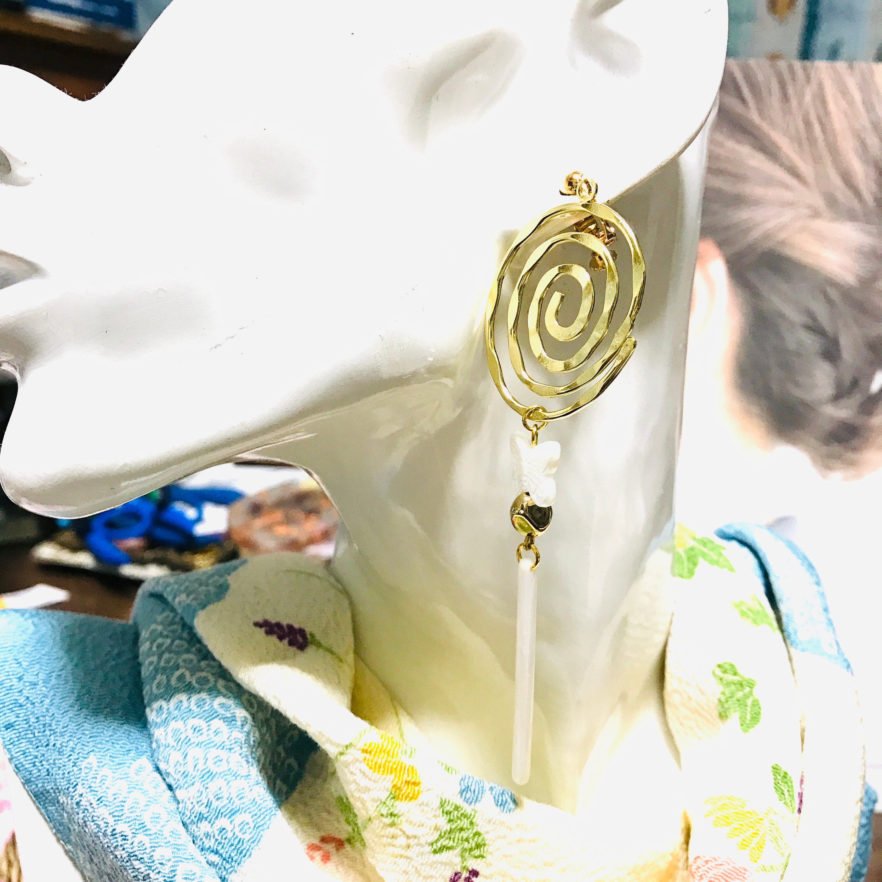 クルクルパーツも楽しいイヤリングです♪