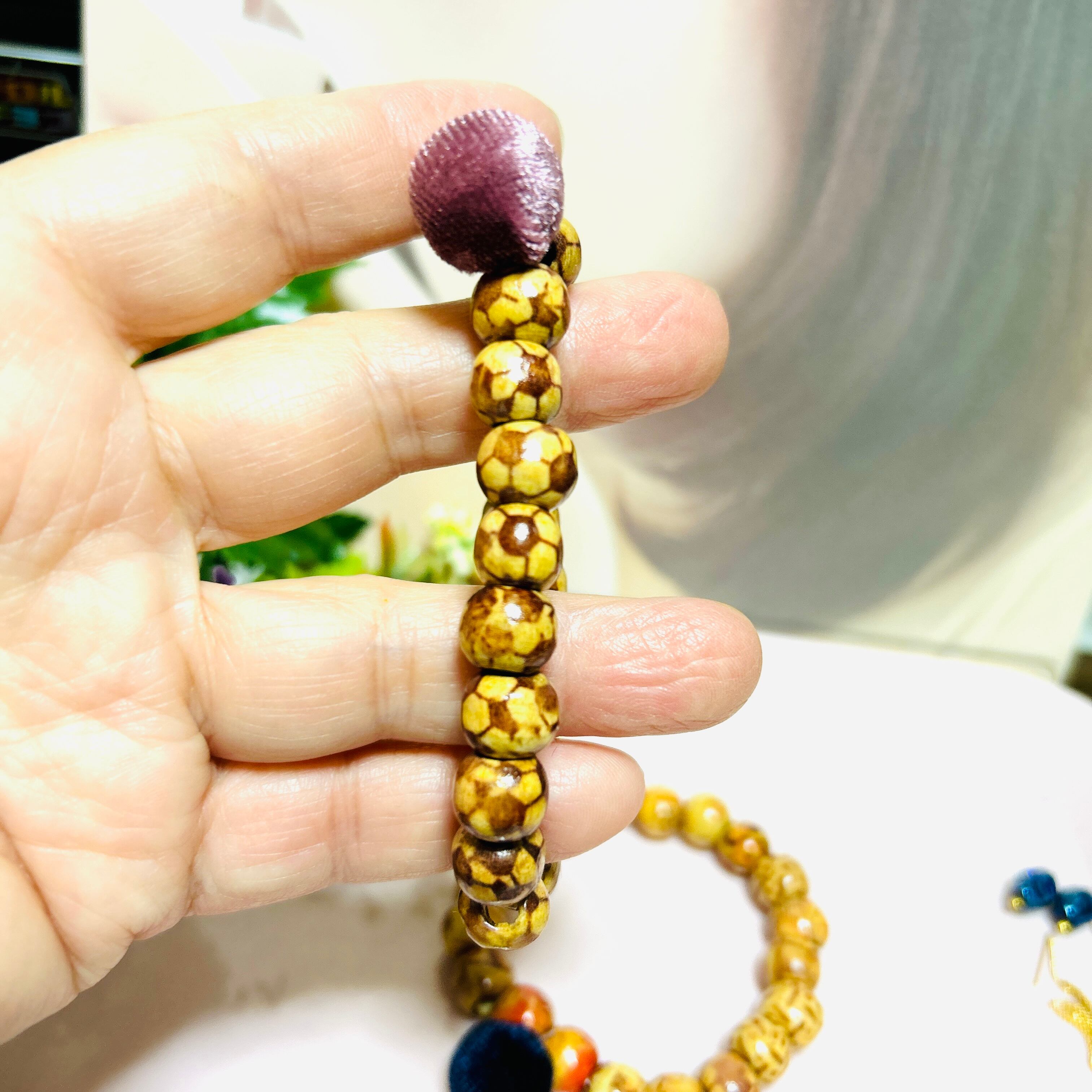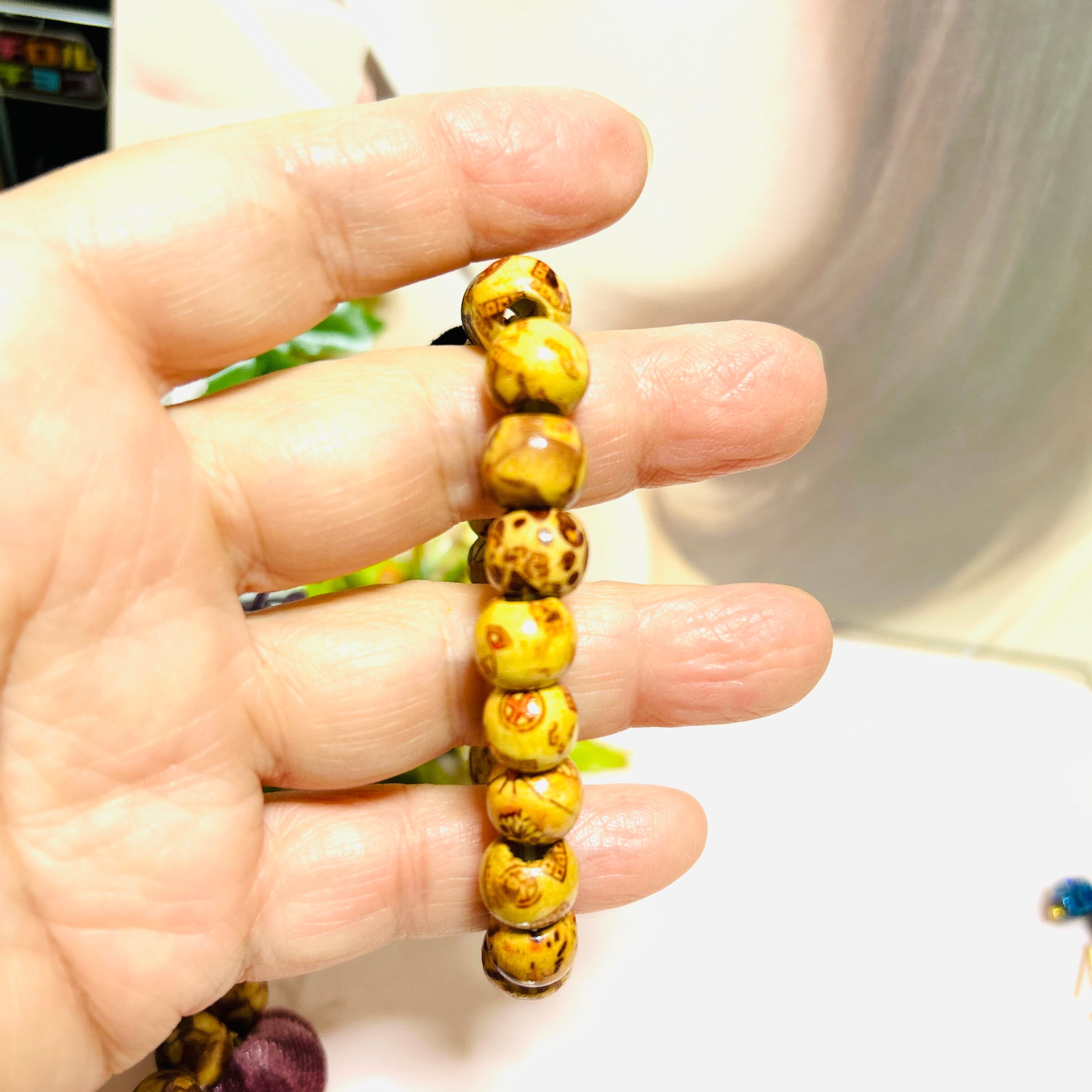 ウッドビーズに柄が入ったお洒落なブレスに。