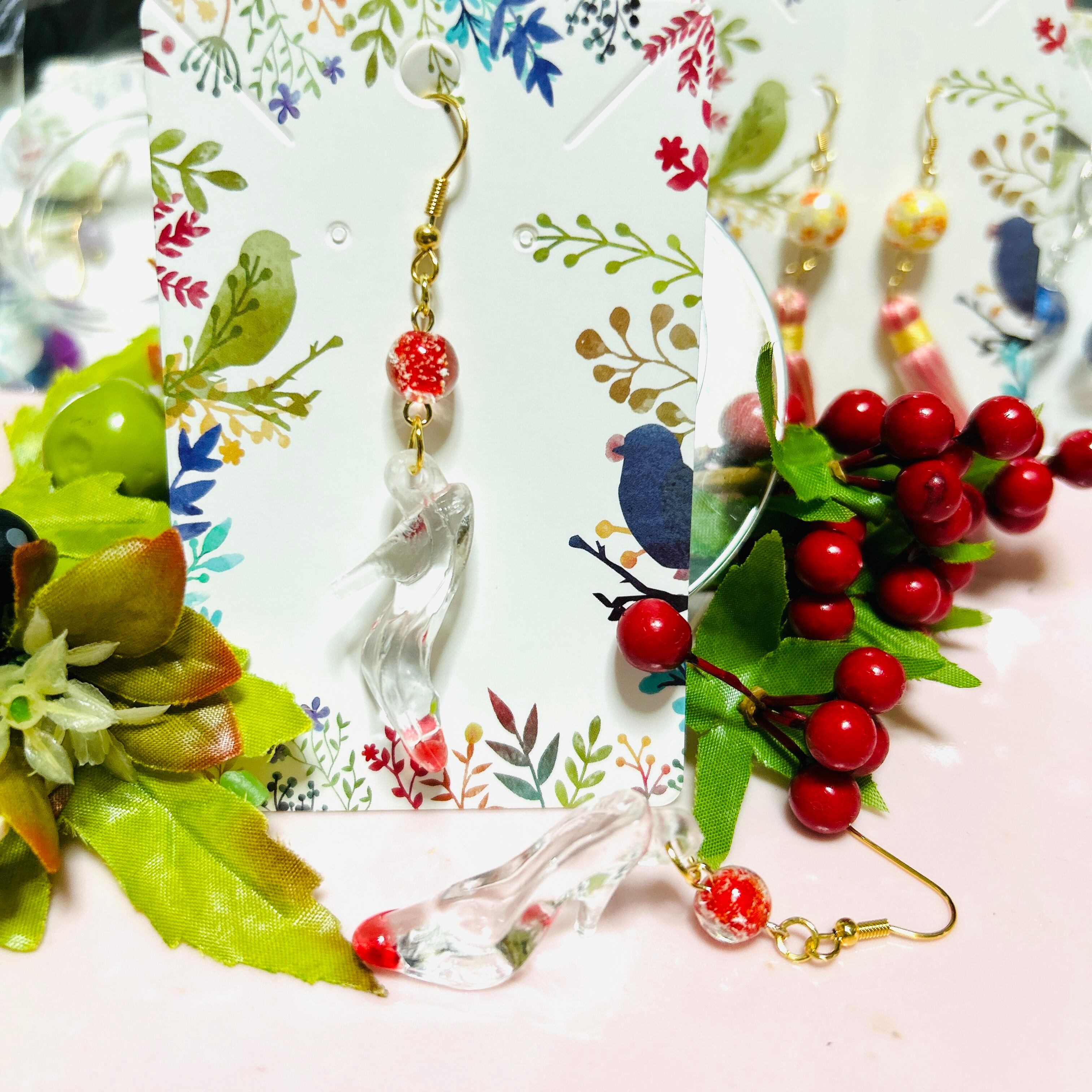 赤ビーズは蓄光ビーズ 6mm使用。